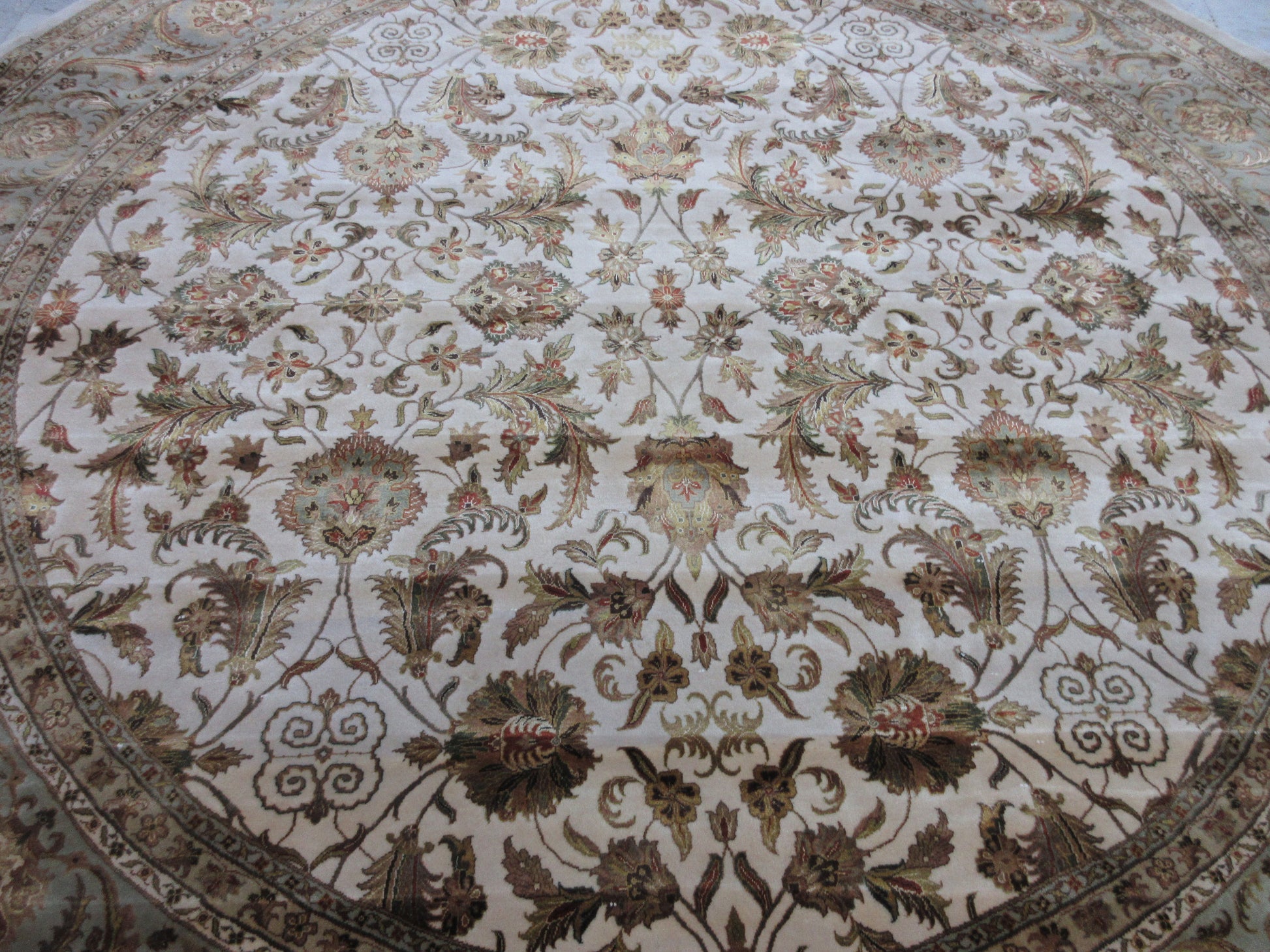 10x10 Feet Round Persian Rug - Hand-Knotted Silk Carpet - Elegant Ivory & Light Blue Designer Home Decor
