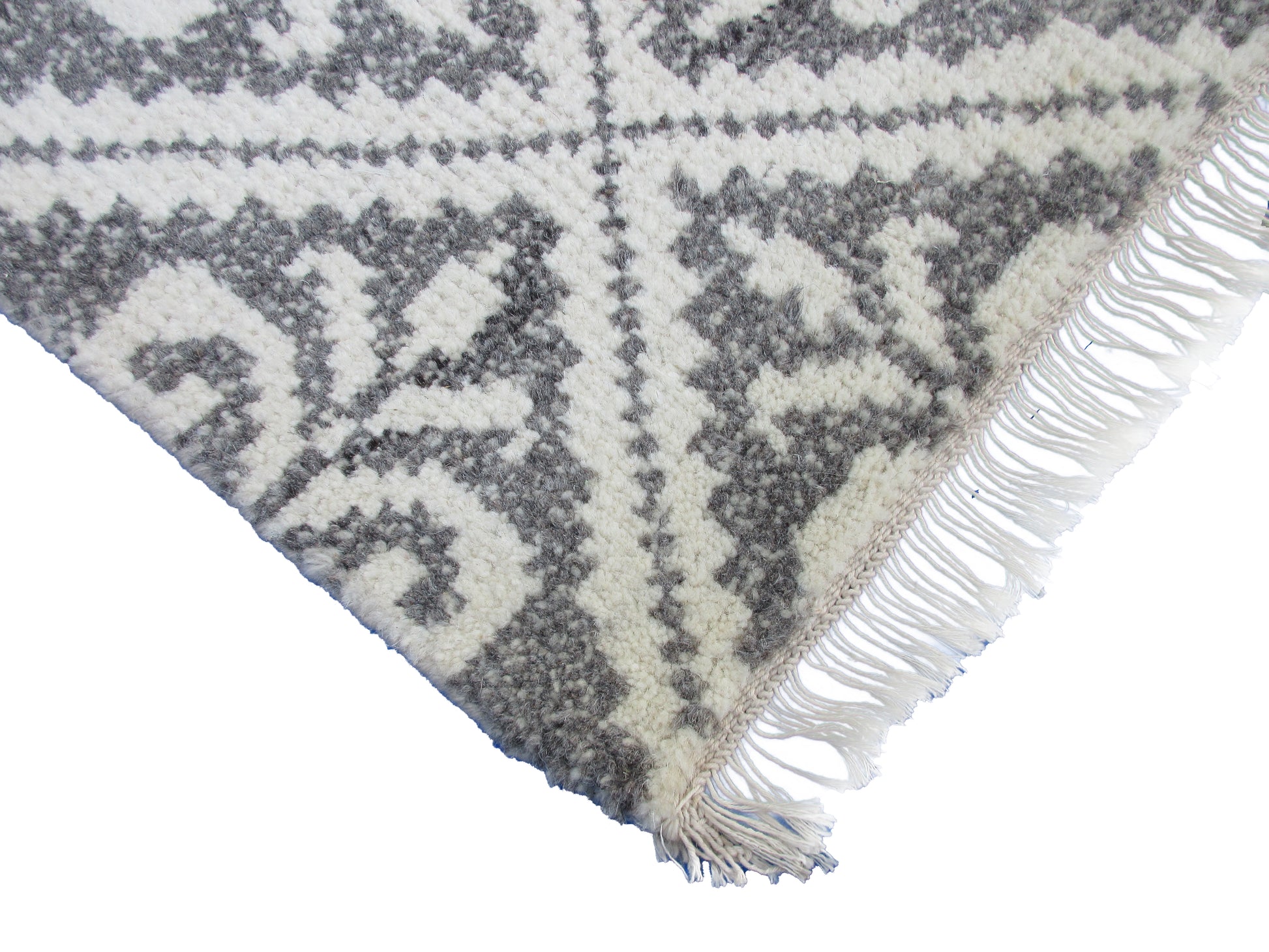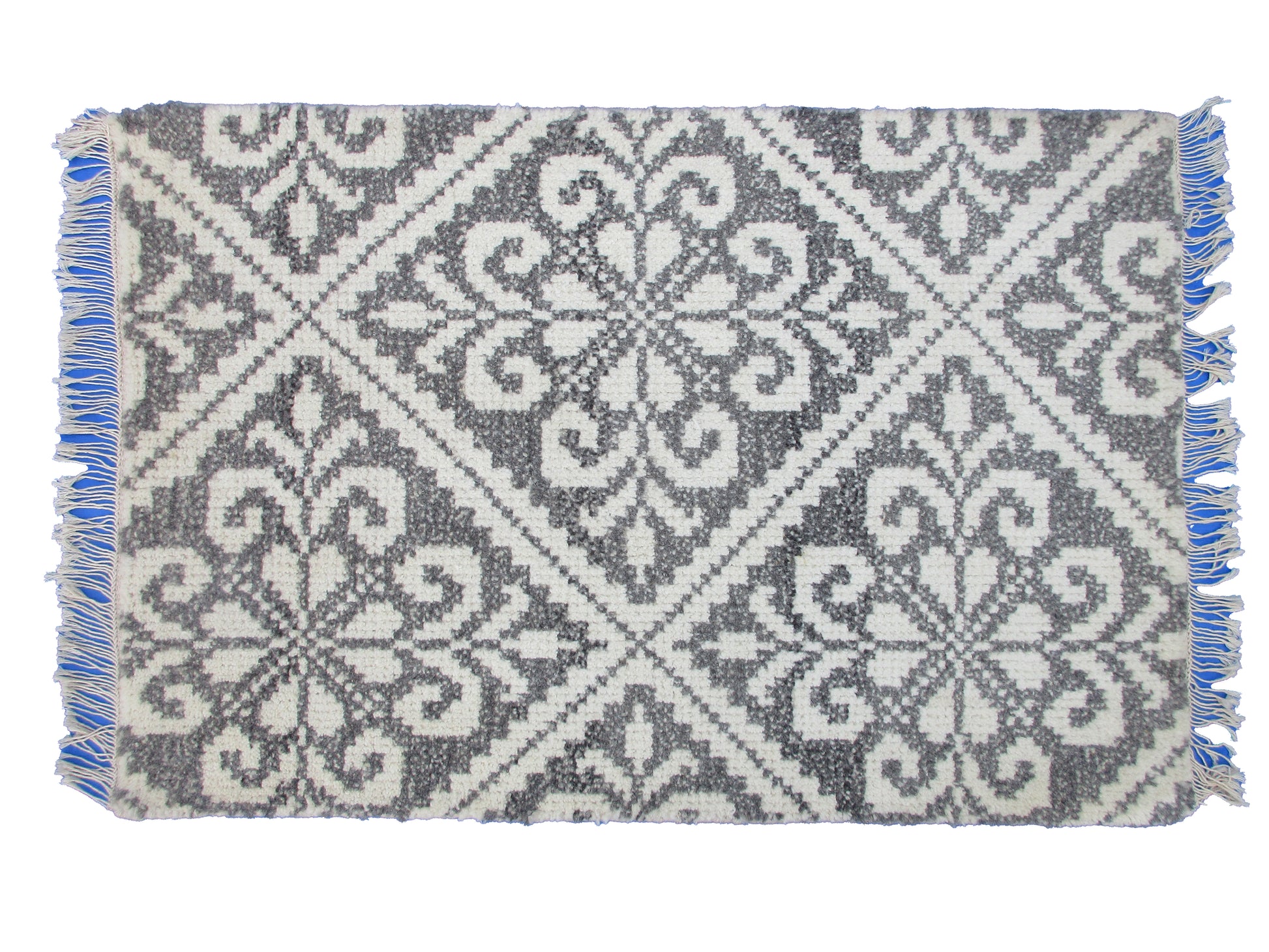 Add a touch of style to your doorstep with this 3x2 ft black and white geometric doormat. Handwoven from durable materials, this mat features intricate patterns and fringed edges for a unique look. Perfect for both indoor and outdoor use, this doormat is both functional and fashionable.