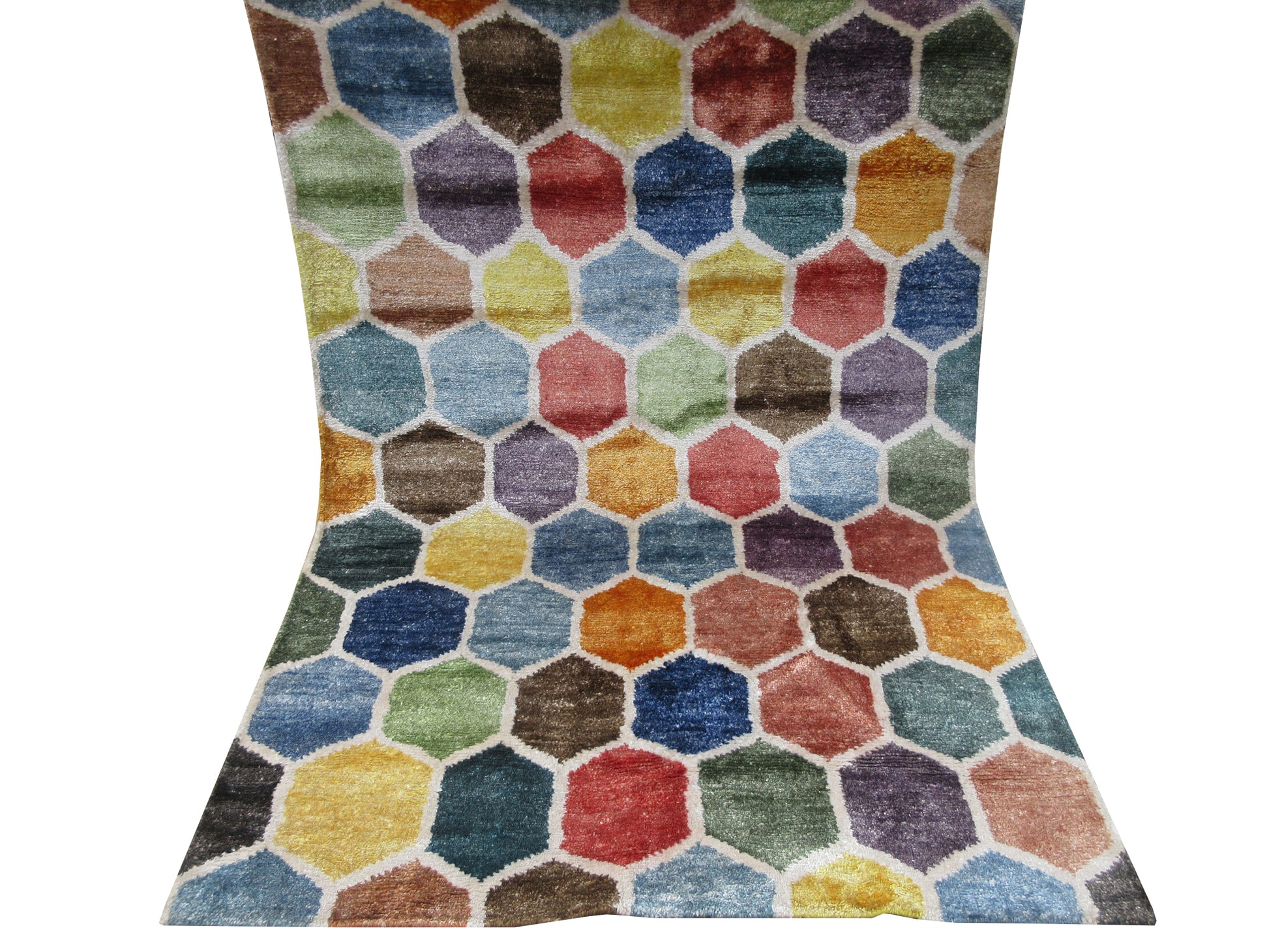 6.5x4.7 ft Colourful Hexagonal Bamboo Silk Area Rug - Modern Geometric Area Rug