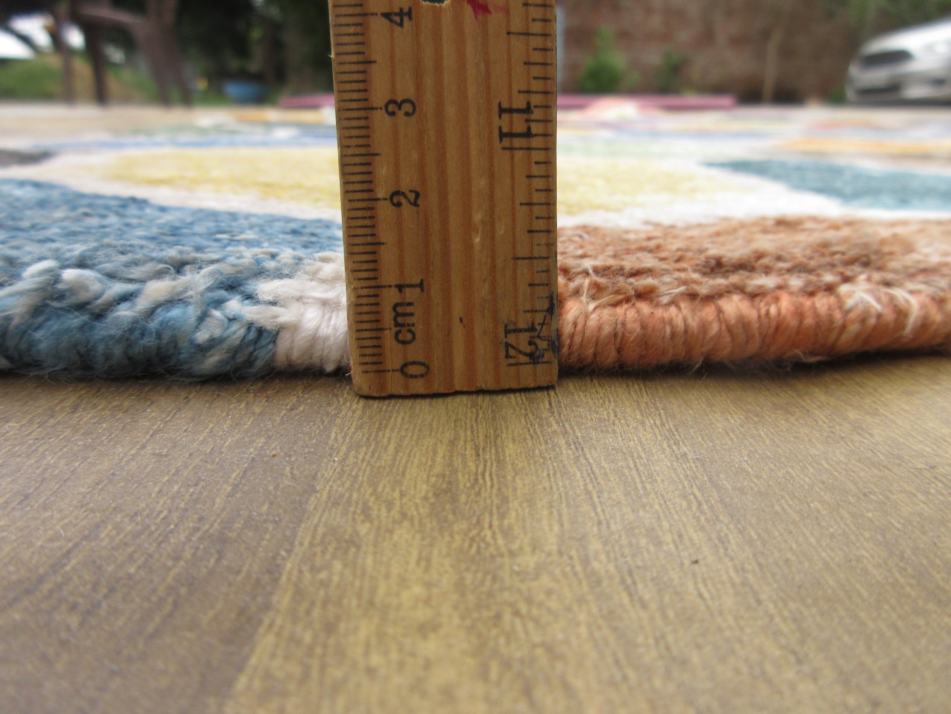 Introducing a stunning 6.5x4.7 ft area rug from The Rug Company. This modern geometric rug features a unique hexagonal shape and is made of silk material. The rug is hand-knotted using a traditional knotting technique and boasts a non-slip, pet-friendly, one-of-a-kind, eco-friendly, and kid-friendly design. With a medium pile height and medium thickness, this rug is perfect for any room in your home, including the bedroom, living room, home office/study, guestroom, and nursery. The multicolor pattern and Asian/Oriental regional design add a touch of elegance to any space. Spot clean only. This rug is 100% hand-knotted by expert artisans from the village, ensuring that it is not machine-made. It is a stunning, eye-catching piece of floor art that will elevate the beauty of your living space. The intricate design, vibrant color concept, high-quality materials, and traditional hand-weaving process combine to create a décor element that you'll cherish every time you see it.
