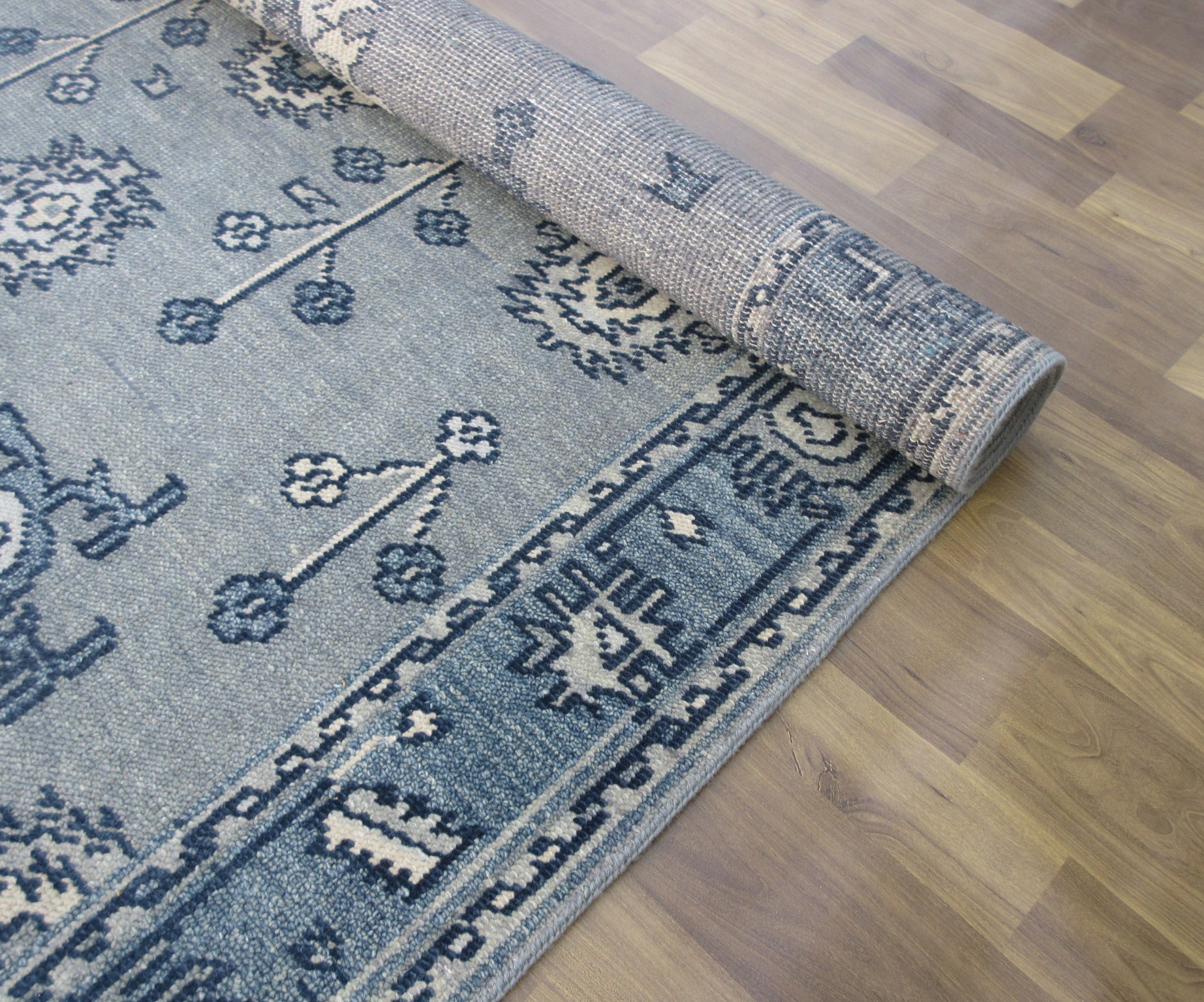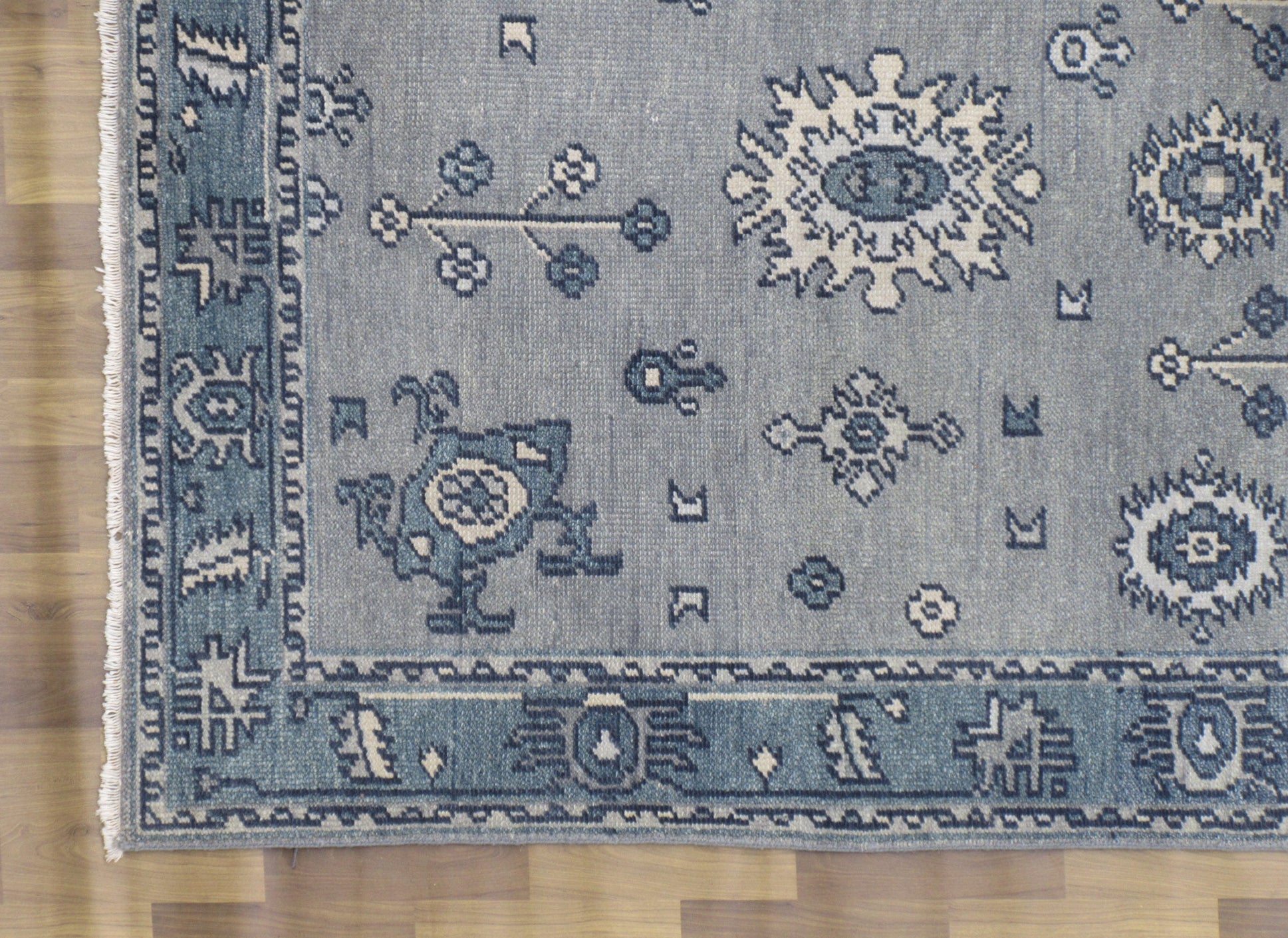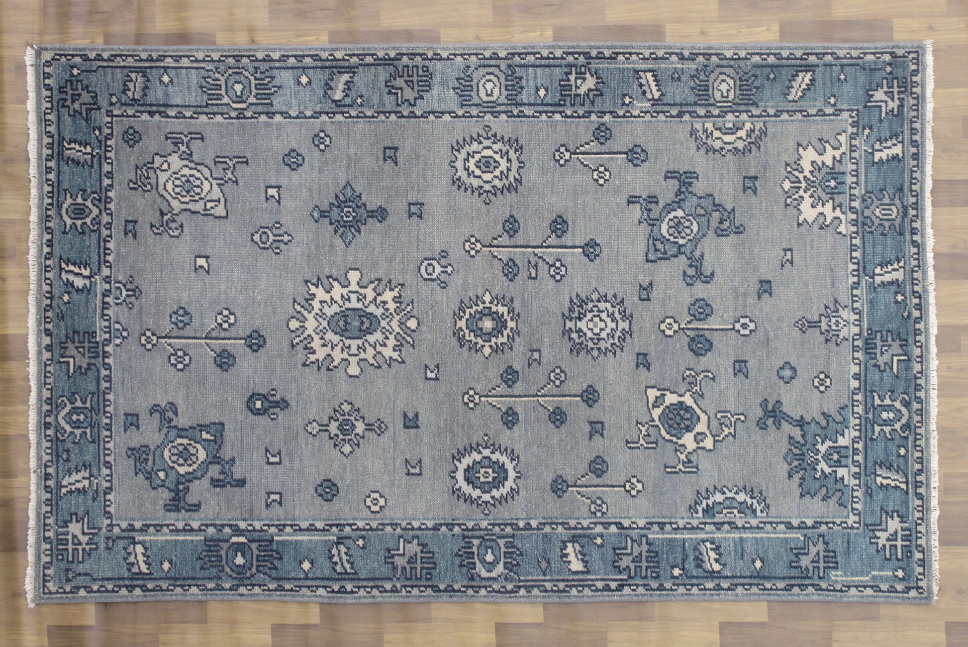 7.10'x5.0' Traditional Handmade Gray & Aqua Area Rug, Asian/Oriental Living Room