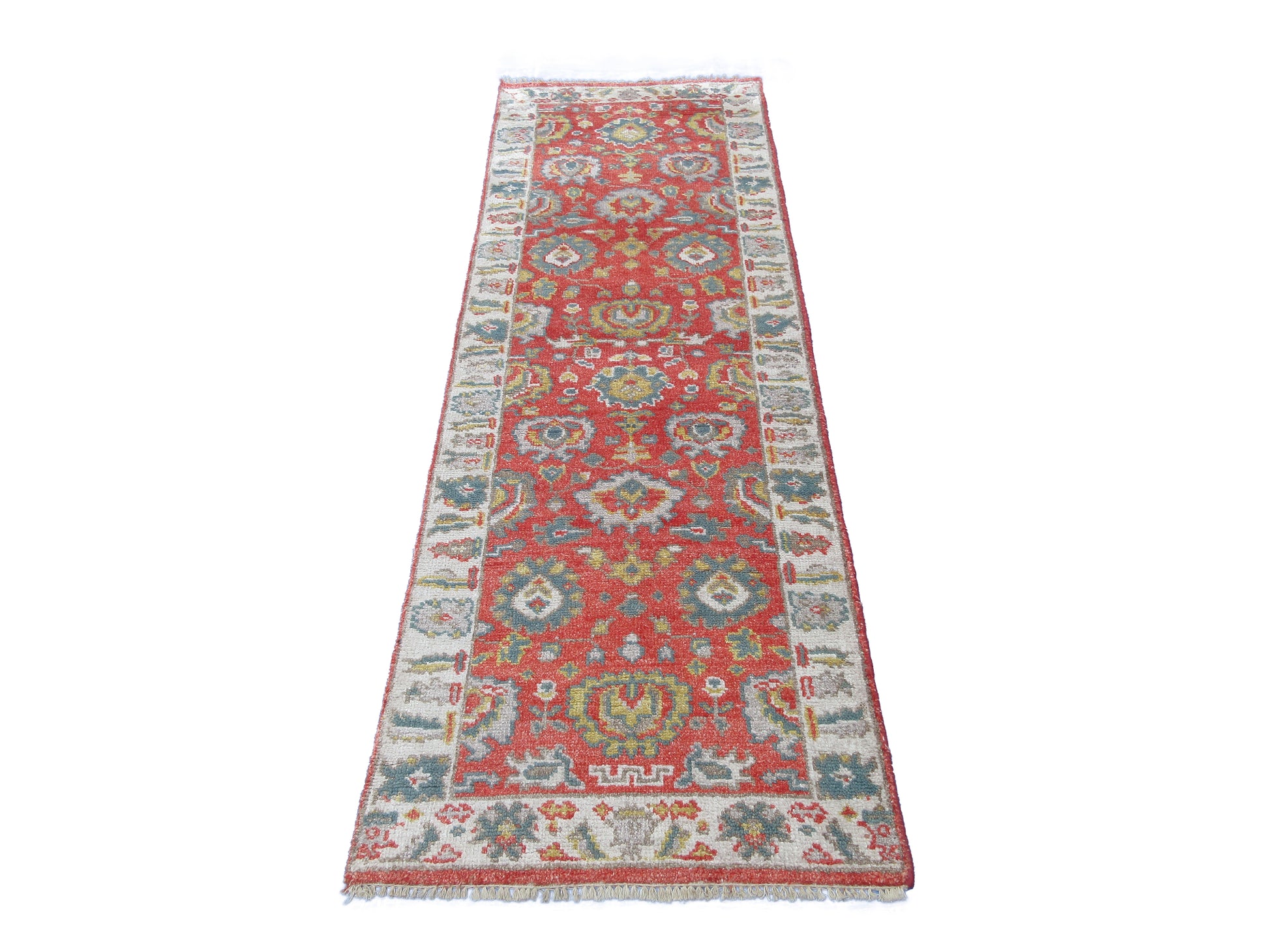 7.11X2.6 Feet Hand Knotted Runner Rug, Pure Bamboo Silk, Floral Pattern, Rust | Beige Area Rug