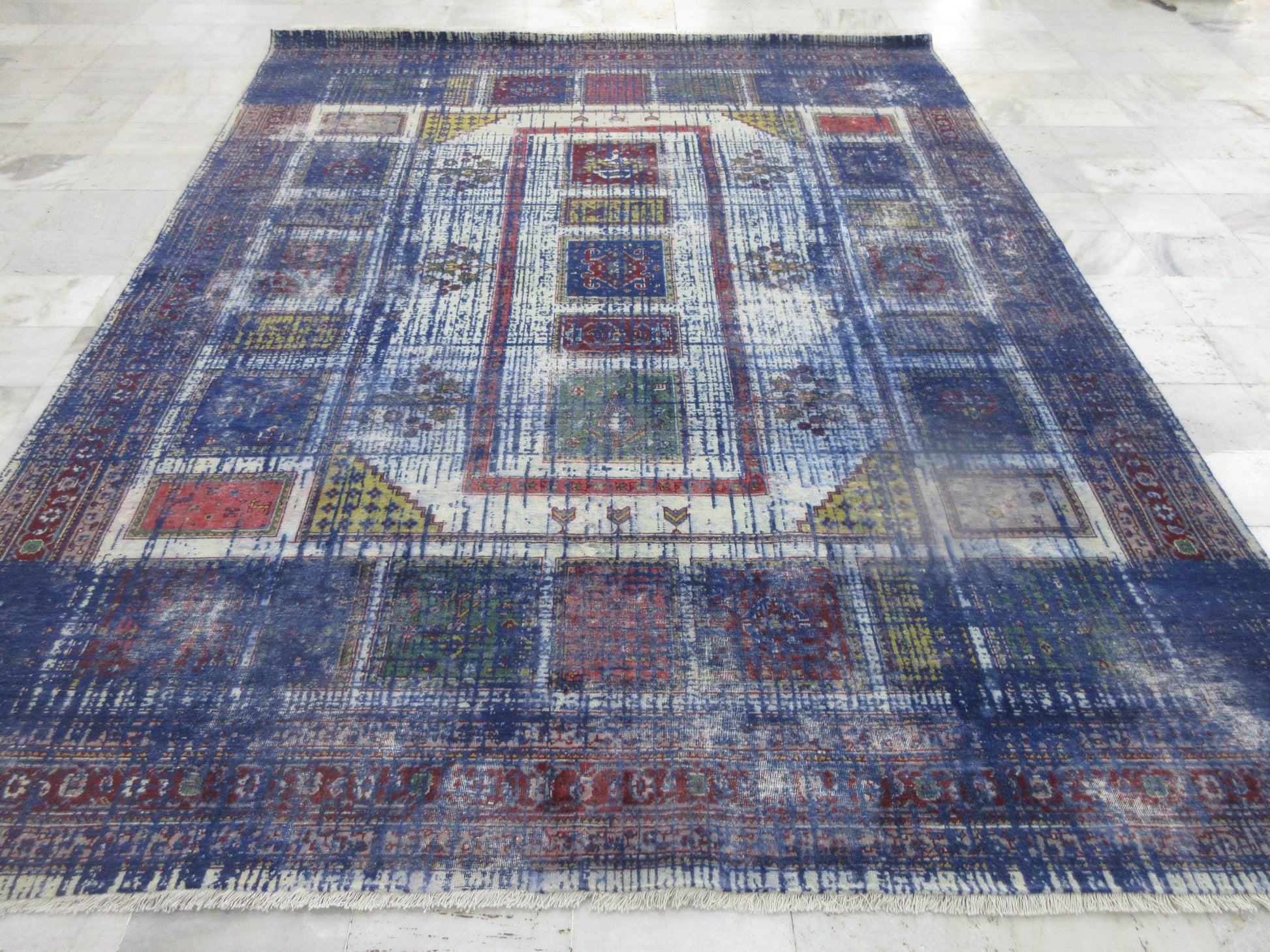 CARE -Regular cleaning will extend life of a carpet and maintain its appearance. If spills occur, blot immediately. Do not rub the stain. Rotate occasionally to equalize wear. Use protectors under the legs of heavy furniture to avoid flattening and piling. If thread comes out do not pull the yarn, trim with scissor. Periodic professional cleaning recommended.