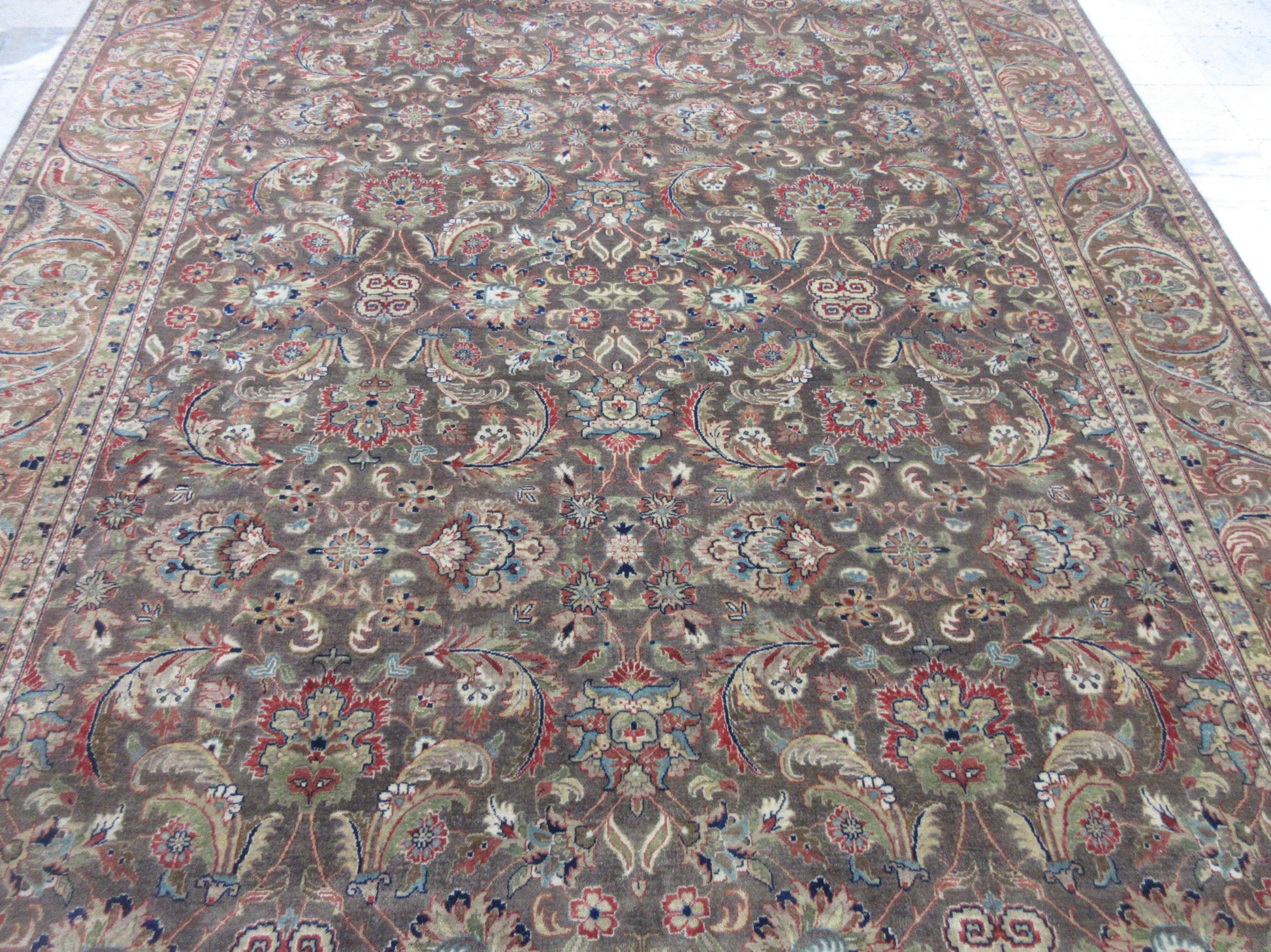 Hand-Knotted 10x8 ft Persian Style Oriental Rug - Wool Floral Design Grey | Brown Area Carpet