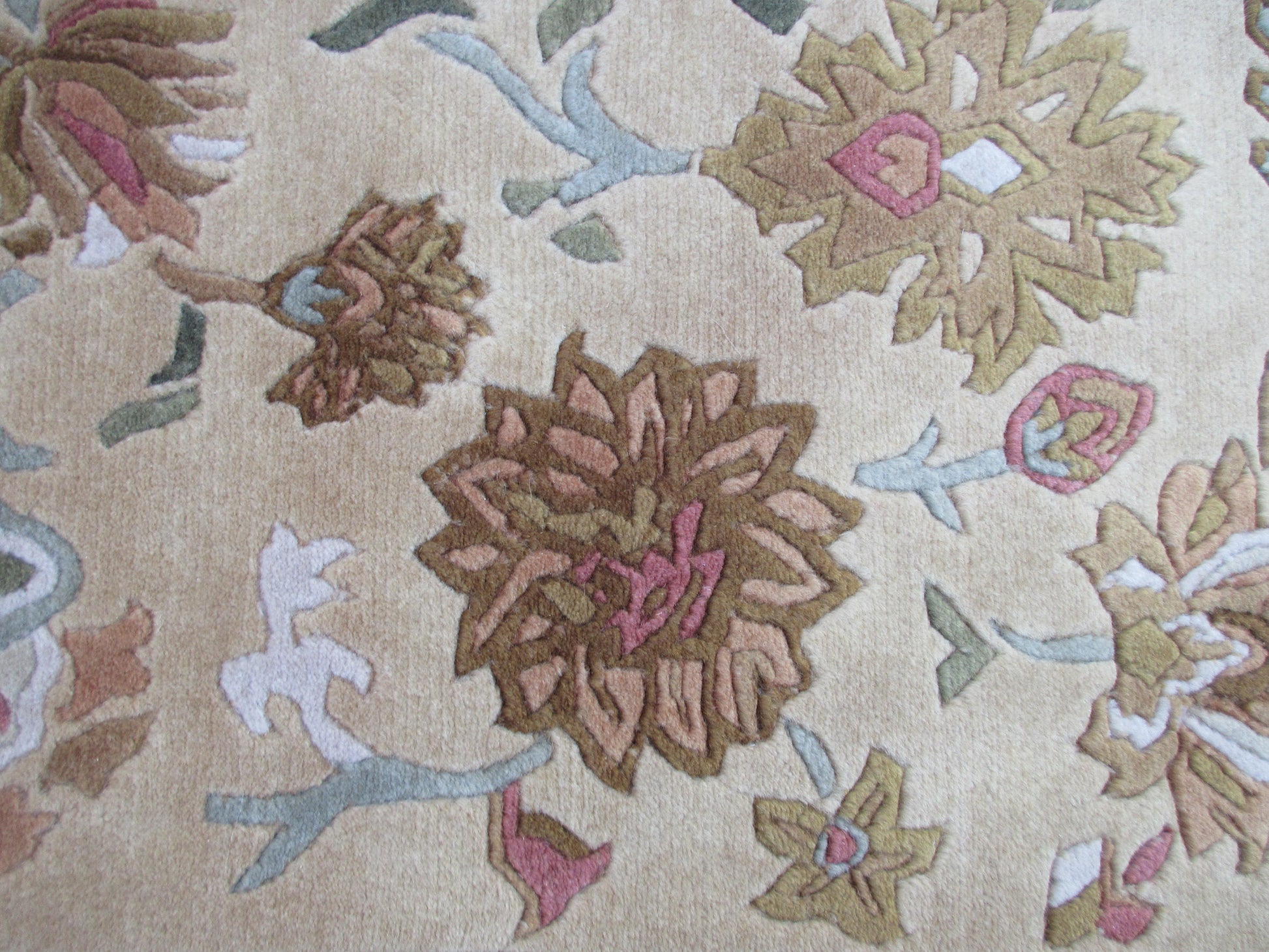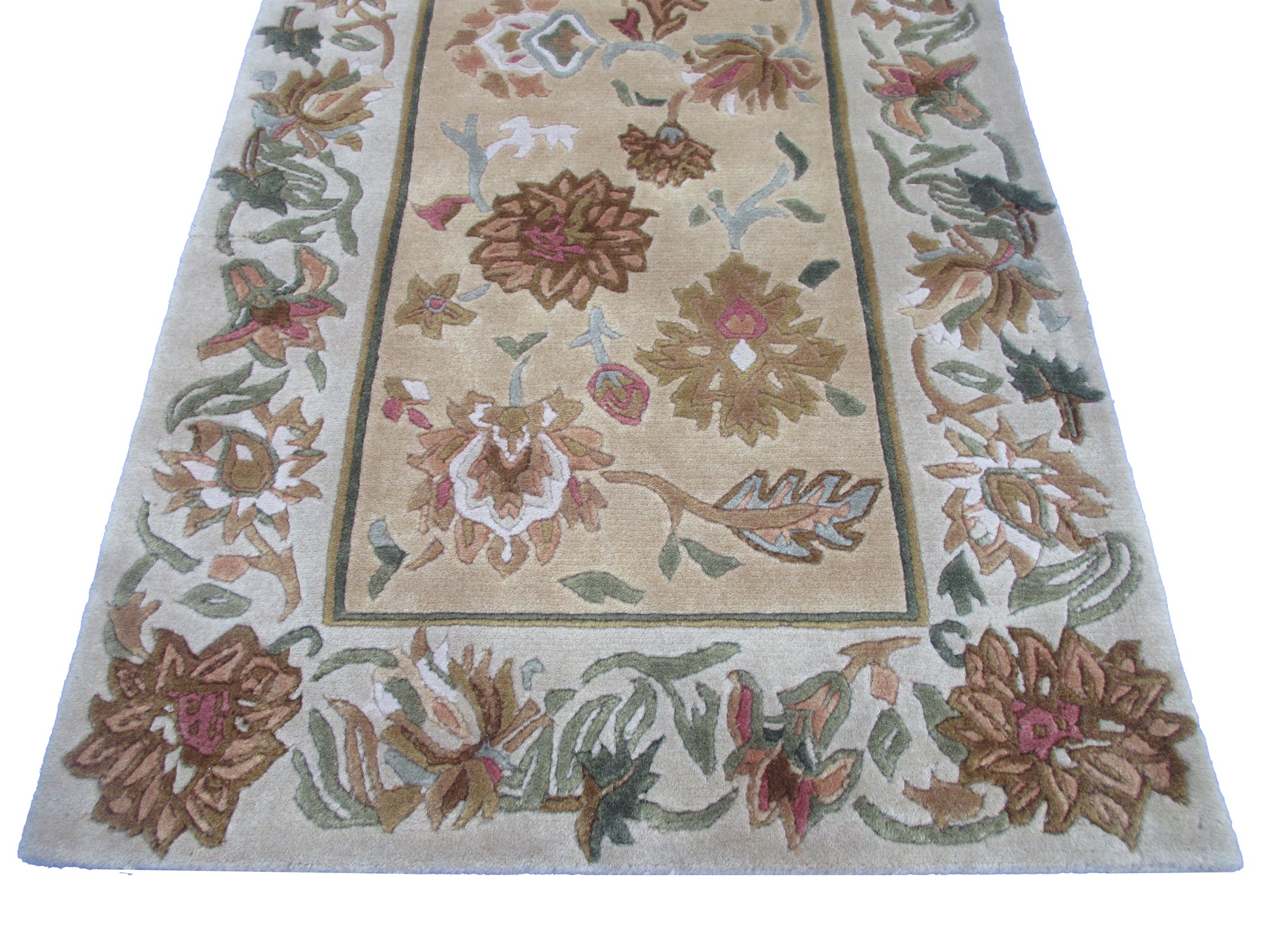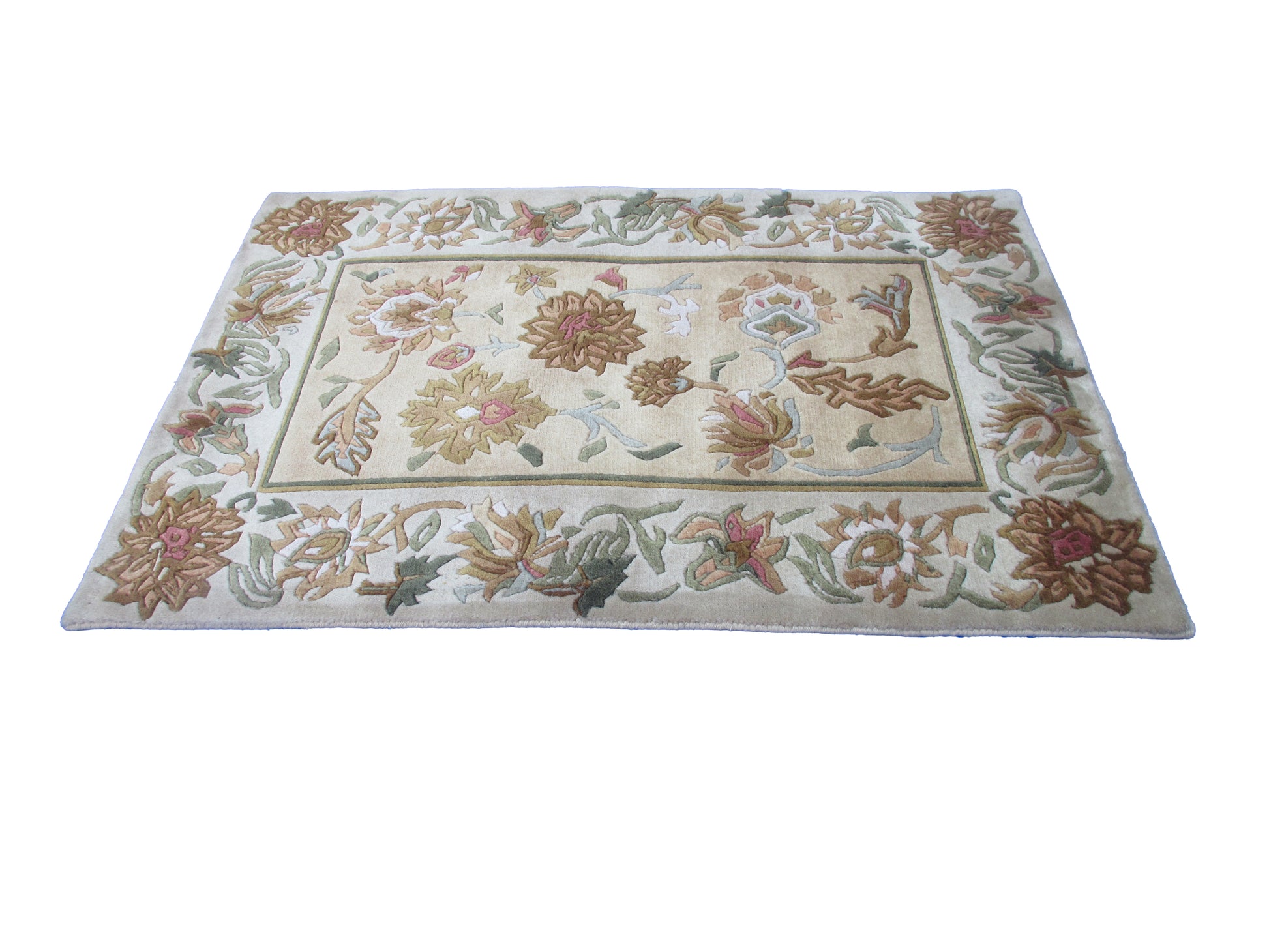 Handmad Floral Wool Area Rug -Lt. Gold | Grey and Earth Tones 3.0X2.0 ft Rug