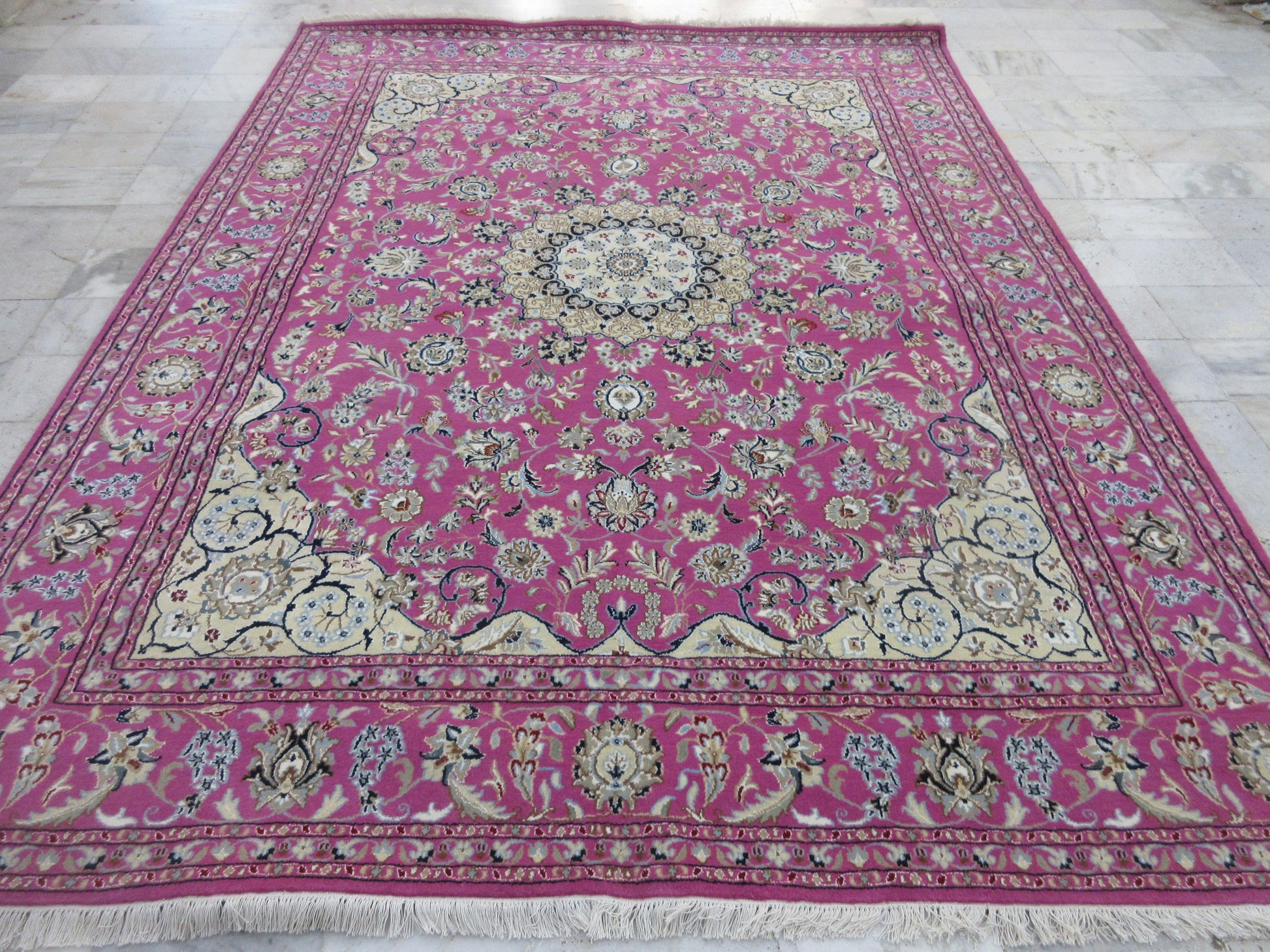 Your home with this Handmade 8x10 Ft Pink Oriental Silk Rug, featuring a Traditional Persian Design. This rug is 100% hand-knotted by expert artisans from the village, ensuring that it is not machine-made. It is a stunning, eye-catching piece of floor art that will elevate the beauty of your living space. The intricate design, vibrant color concept, high-quality materials, and traditional hand-weaving process combine to create a décor element that you'll cherish every time you see it.