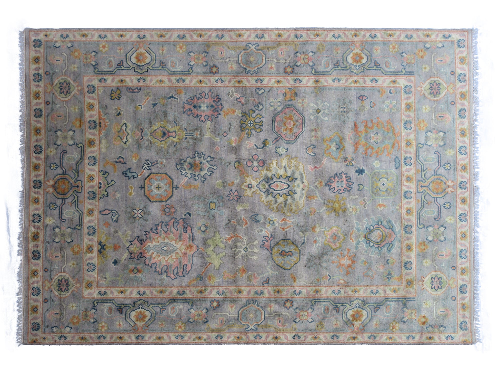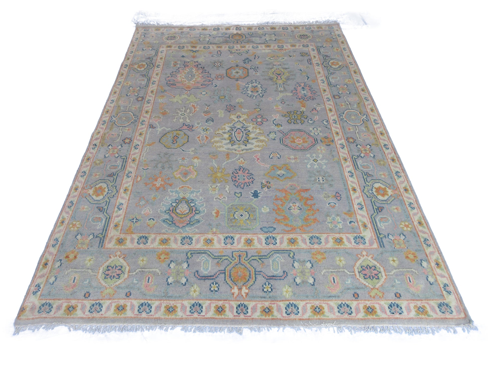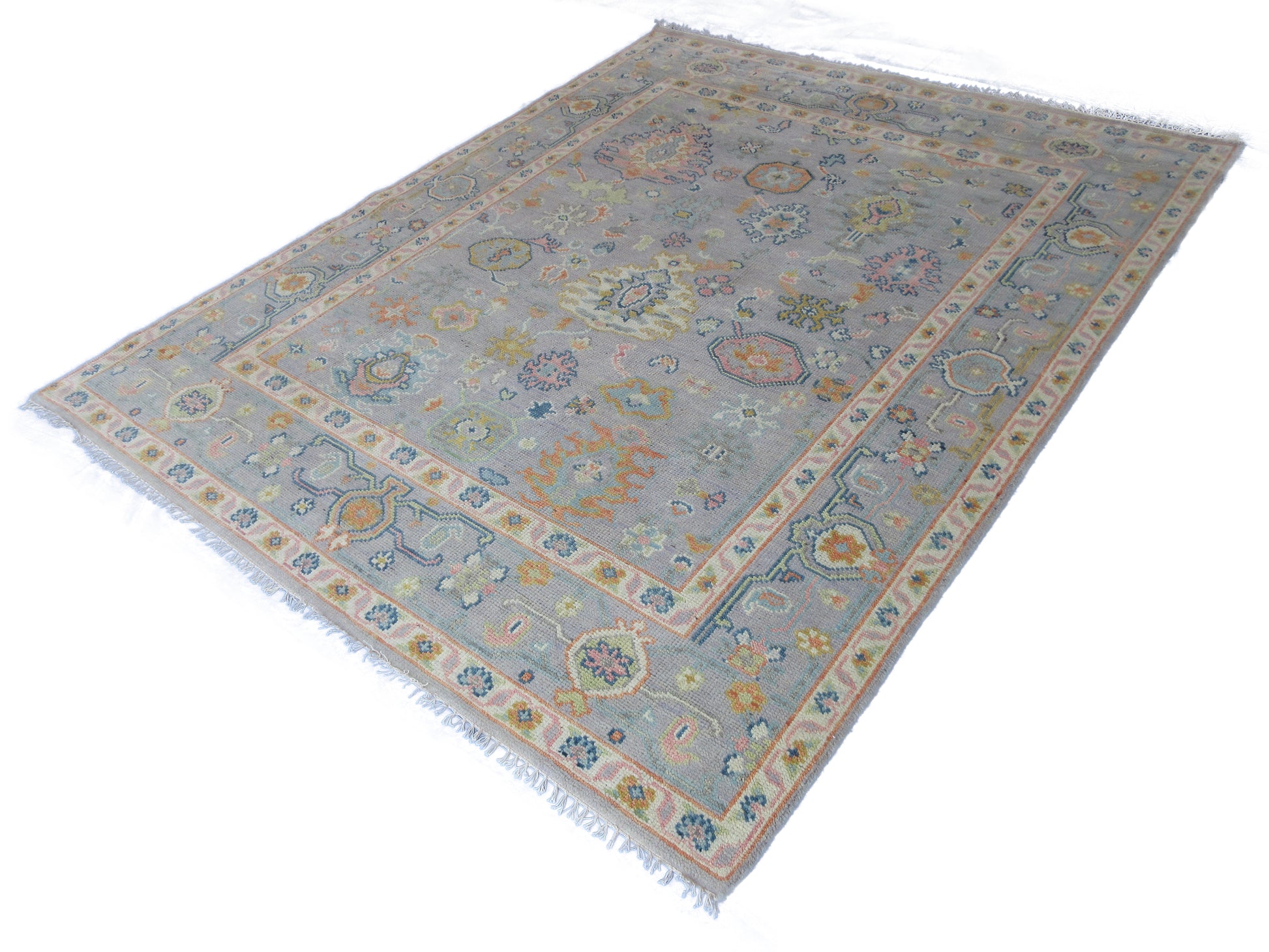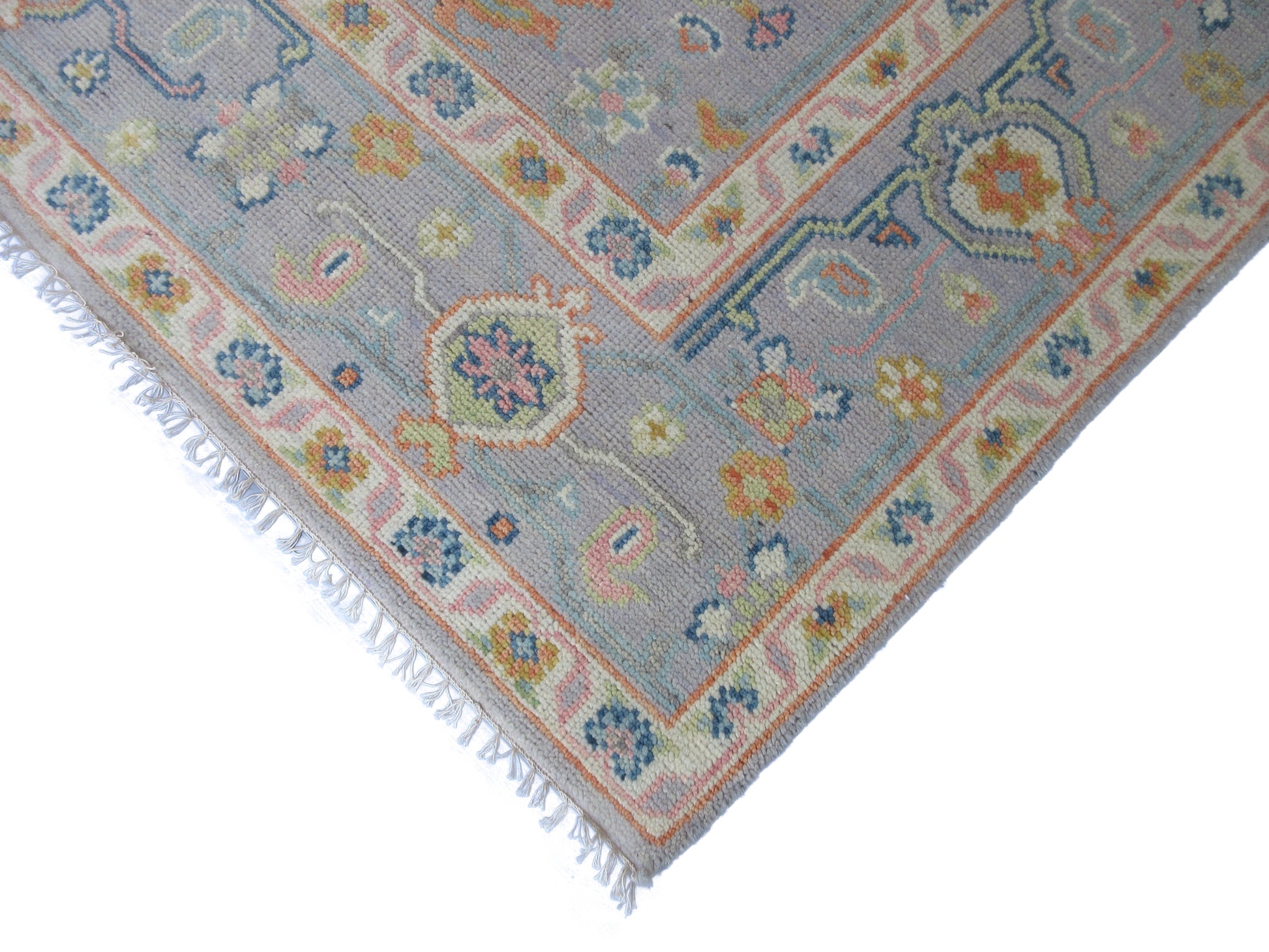 Handmade Oriental Floral Area Rug 10X 8 ft Traditional Design, Soft Grey | Grey Area Rug