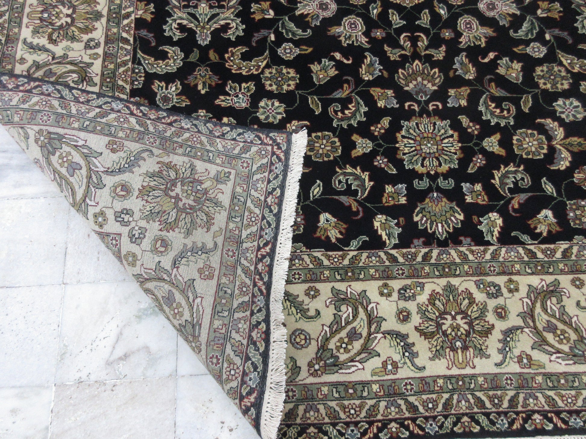 Elevate your living space with our Luxurious Black and Ivory Hand-Knotted Persian Silk Rug, a true masterpiece of craftsmanship. Meticulously woven by skilled artisans, this Persian rug features an intricate design that blends traditional elegance with modern sophistication. Made from the finest silk, its lustrous finish and vibrant black and Ivory palette make it the perfect statement piece for any room. Ideal for upscale interiors, this rug adds warmth, luxury, and timeless beauty to your home. Shop now and transform your space with this exquisite hand-knotted silk rug.