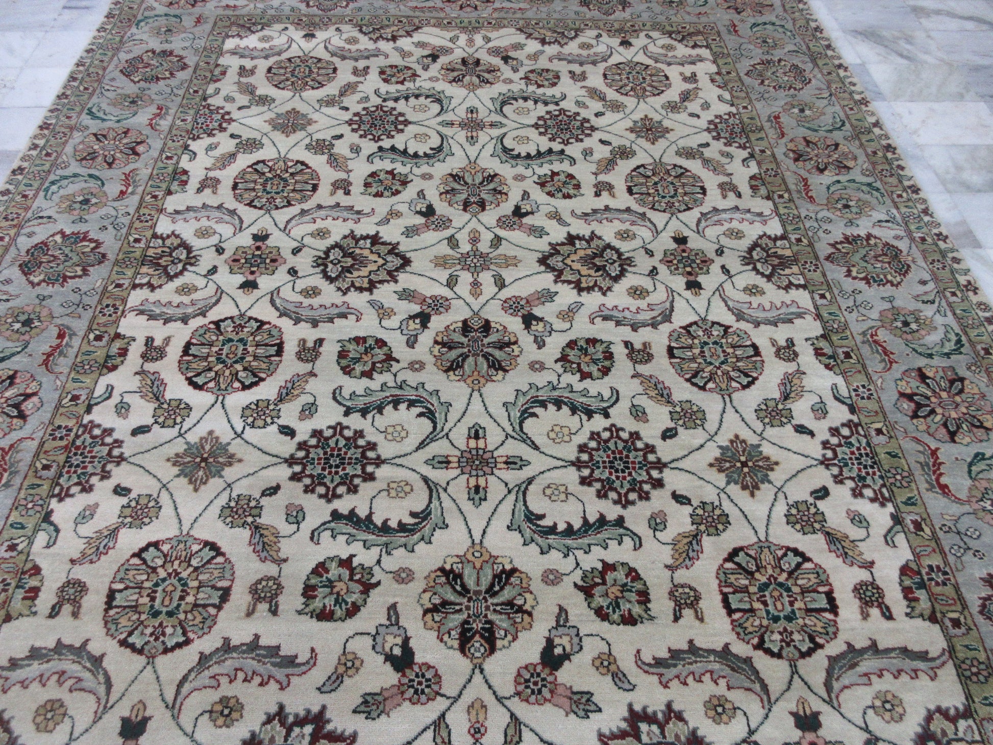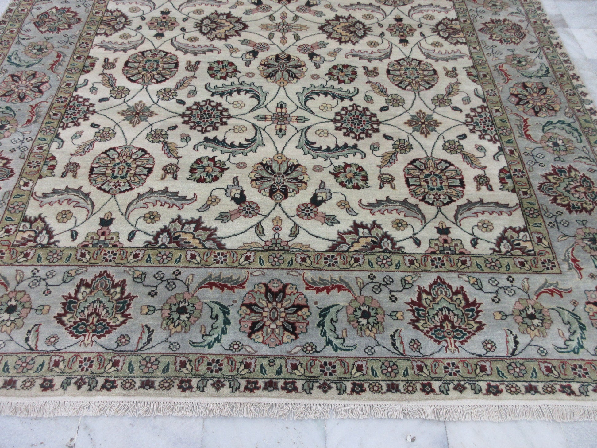 Luxury Floral Area Rug - Beige & Lt.Blue (10x8 Feet) | Classic Living Room & Bedroom Carpet