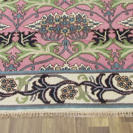 This rug is 100% hand-knotted by expert artisans from the village, ensuring that it is not machine-made. It is a stunning, eye-catching piece of floor art that will elevate the beauty of your living space. The intricate design, vibrant color concept, high-quality materials, and traditional hand-weaving process combine to create a décor element that you'll cherish every time you see it.